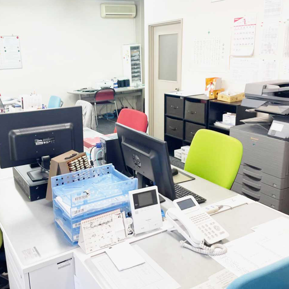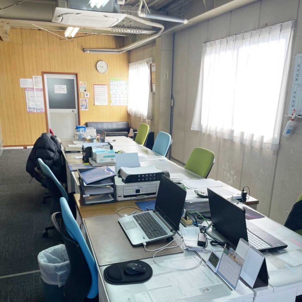 2階が事務所です。1日の終わりに事務所に戻ってその日の作業をまとめます。